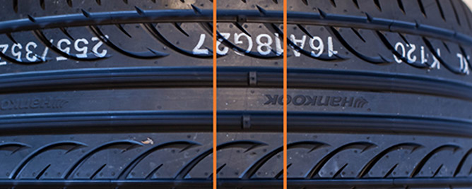 타이어 트레드 홈 속에 돌출된 마모한계 표시를 기준으로 이 곳과 가깝게 트레드가 닳았는지 확인하면서 마모의 정도를 판단하는 것인데요.